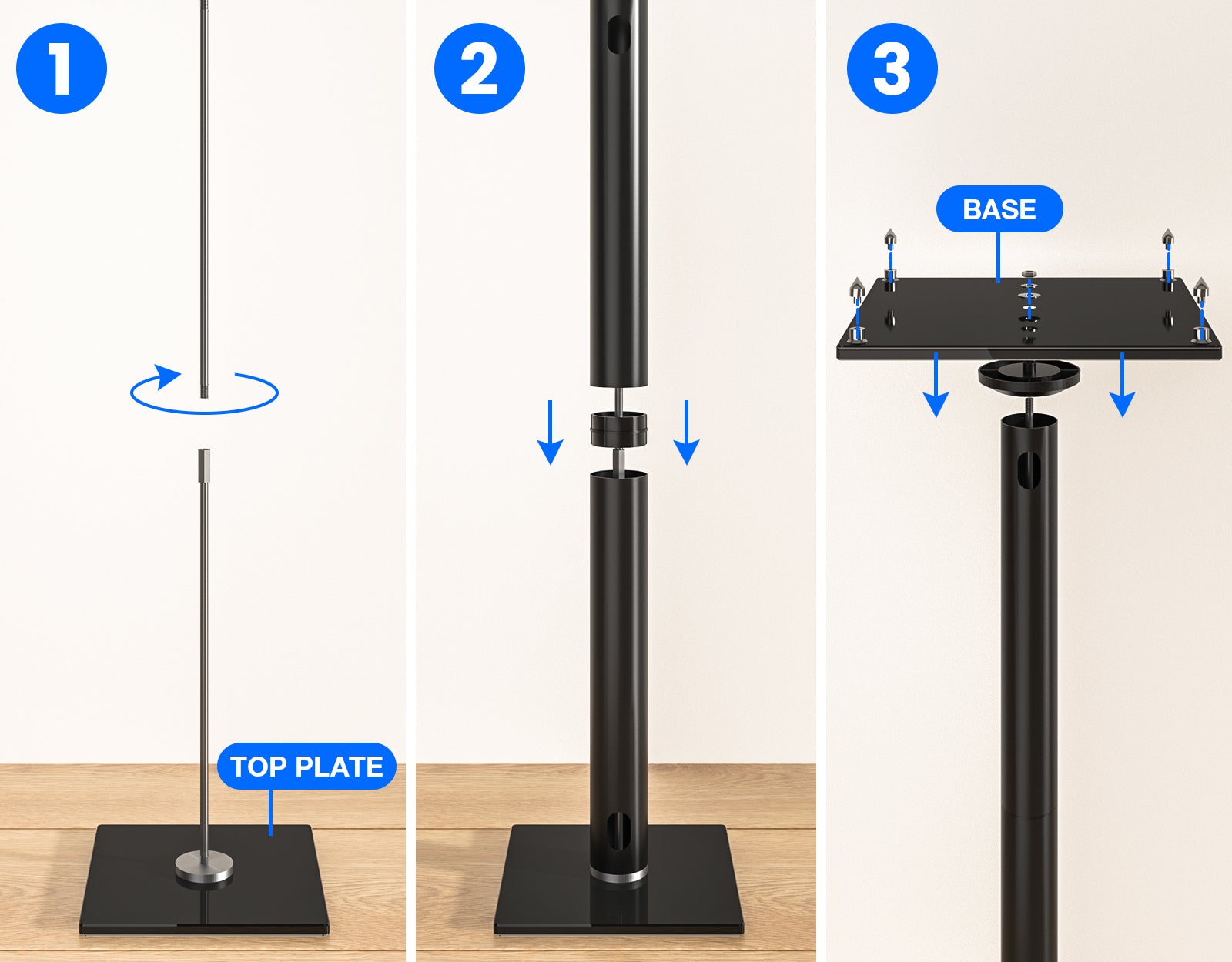 Our speaker stands include all necessary components and detailed assembly instructions; Just follow the instructions, tighten a few screws, and you can effortlessly complete the assembly; Speaker stand system is designed to seamlessly integrate into your everyday audio experience; It's universally compatible with popular speaker brands such as Klipsch, Sony, Bose, Vizio, Samsung, Yamaha, Edifier, Polk, etc.